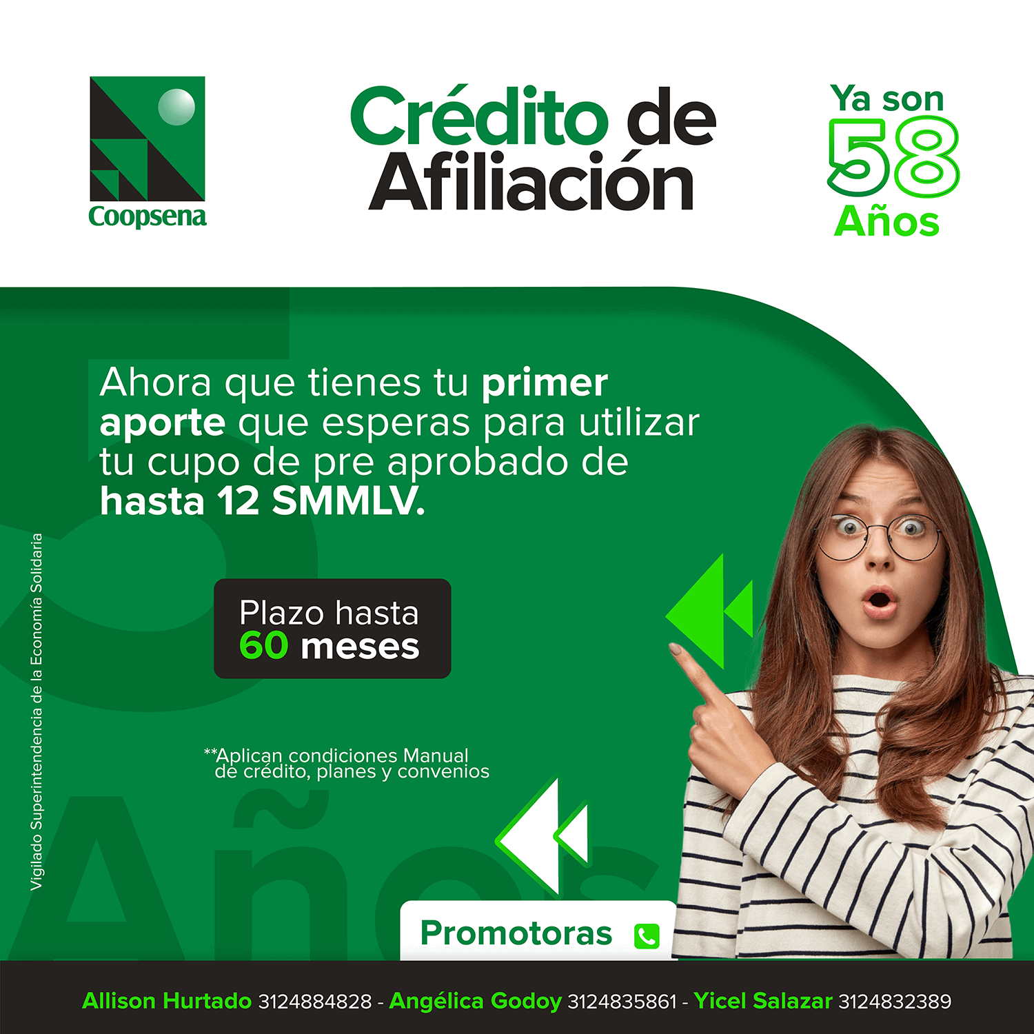Asociese a Coopsena y Obtenga su Crédito de Afiliación