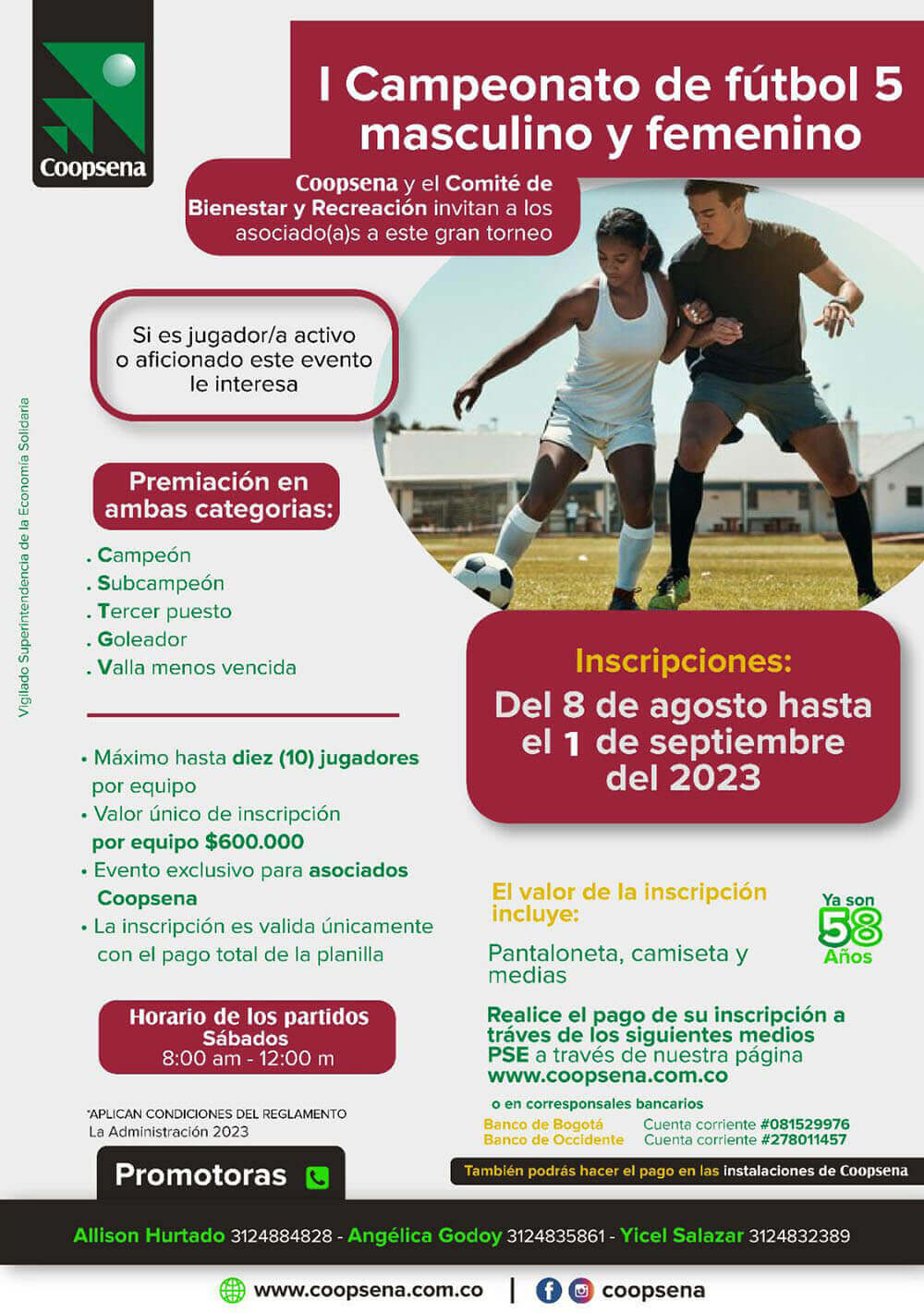 I CAMPEONATO DE FÚTBOL 5 MASCULINO Y FEMENINO