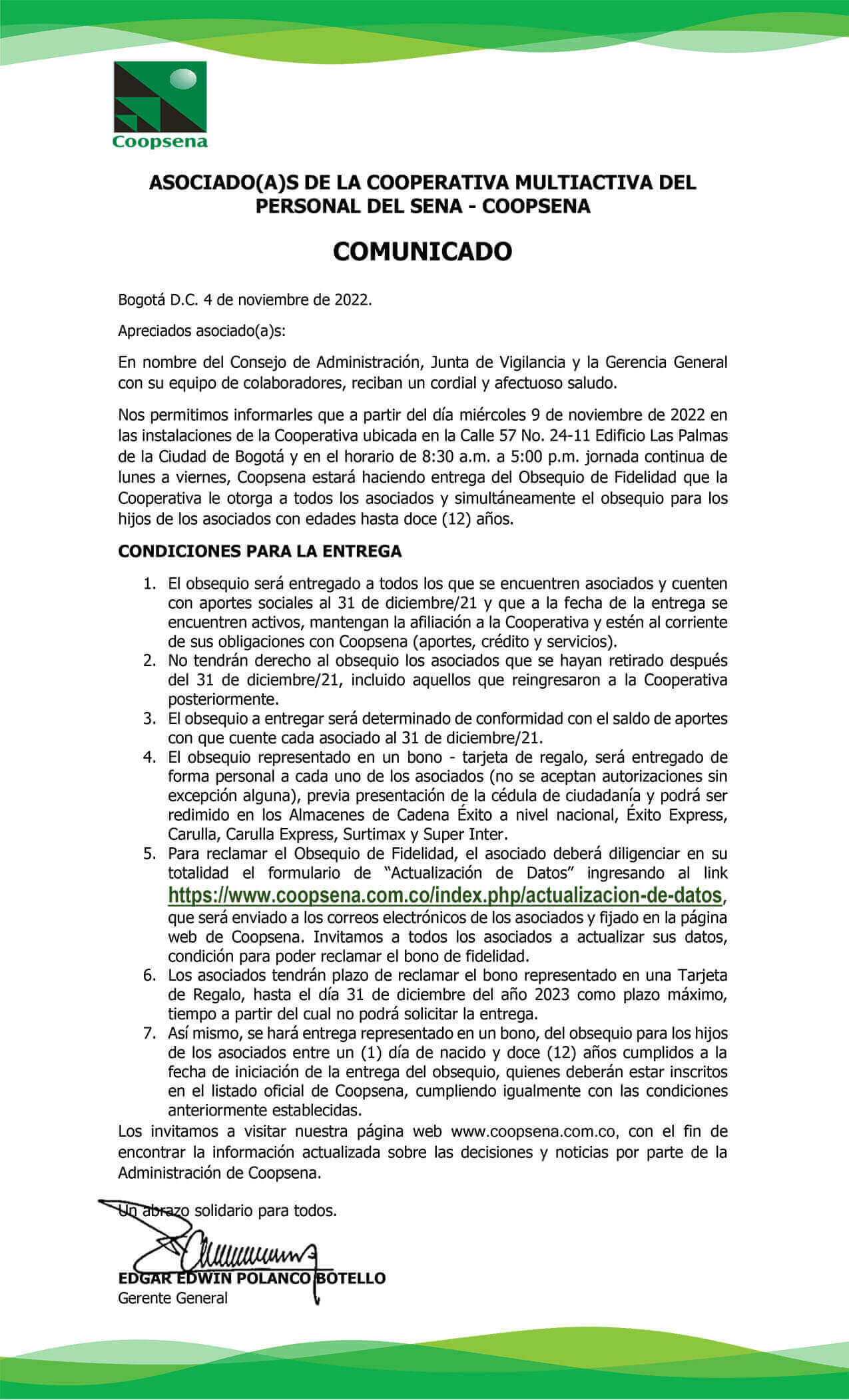 • ⦿ Obsequio de fidelidad para nuestros asociados y sus hijos