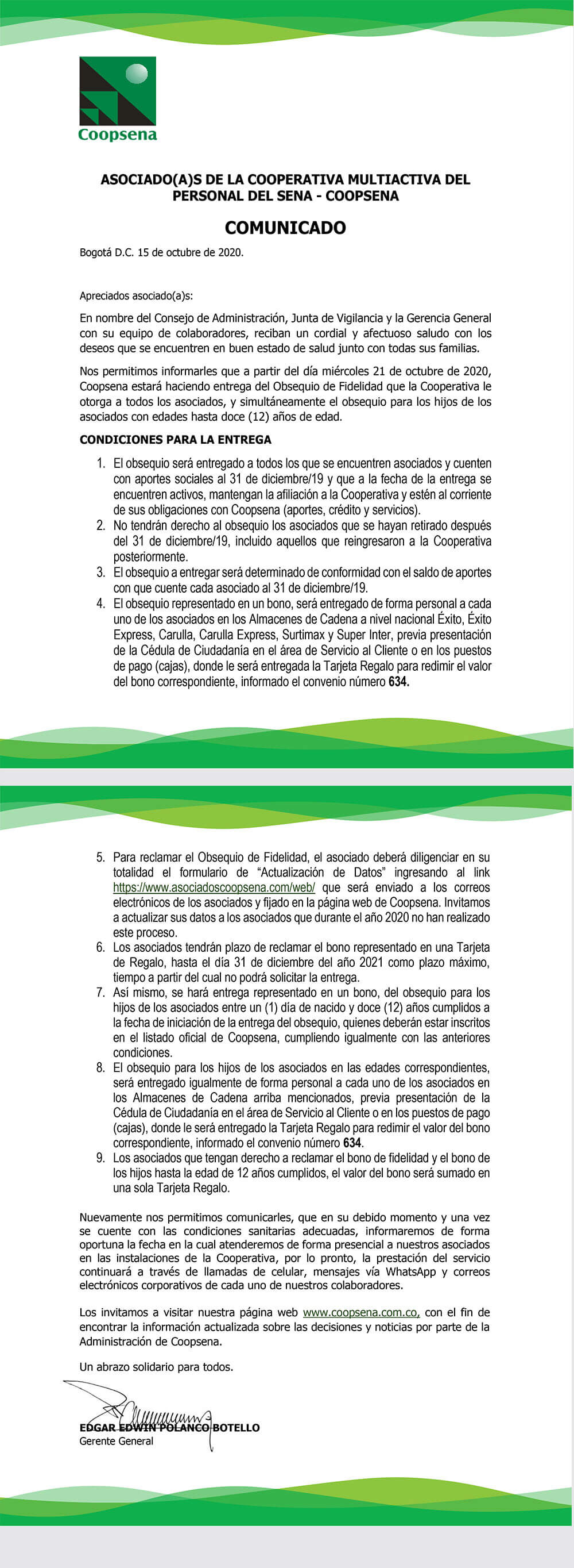 Comunicado COOPSENA